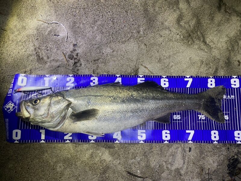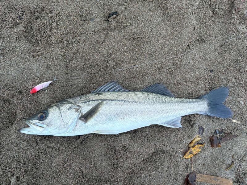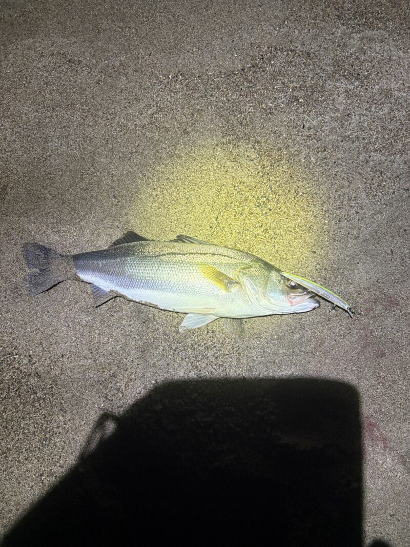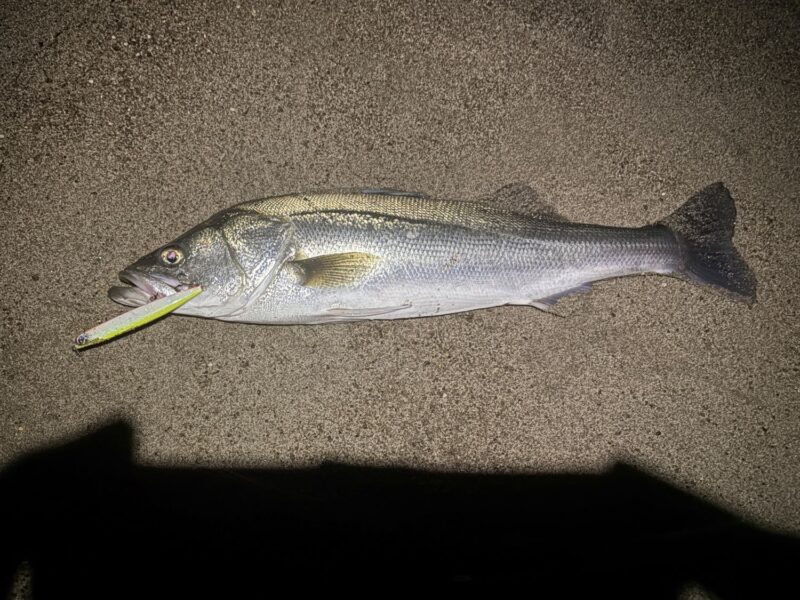 かっ飛び棒で釣れたあと、アタリが遠のいたので、そろそろスレれたかな?と思い、フォローで入れた空海スリム140F。シンペンとは違う動きが良かったのか、波打ち際で喰いついてくれました!