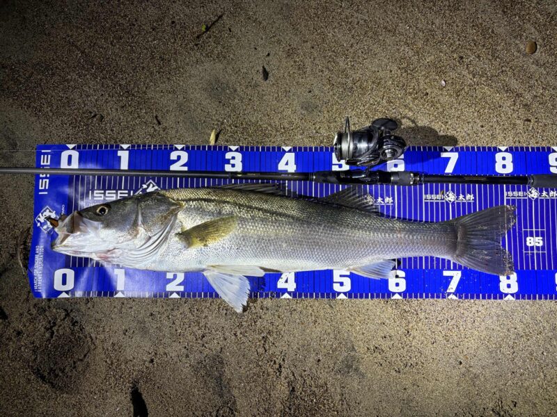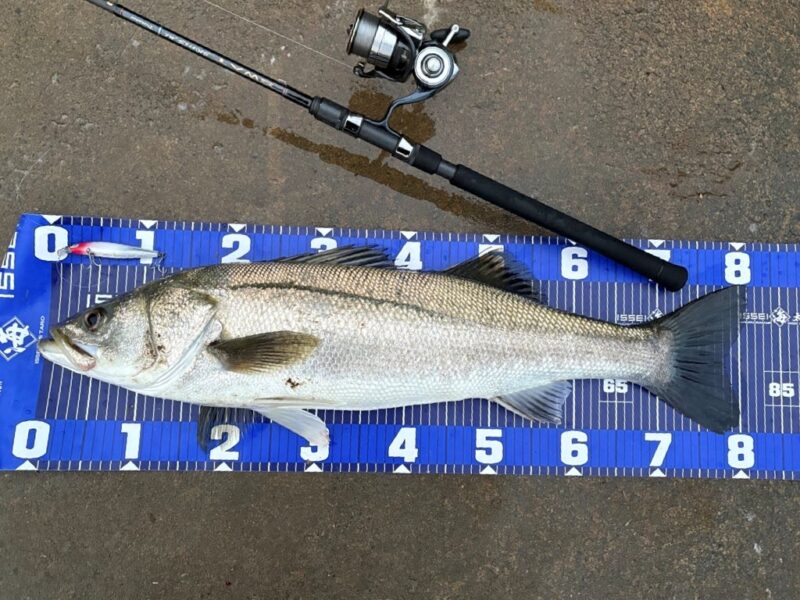 しかも、82㎝のランカーシーバス!サンライズチャートは濁りにも強いカラーで、かっ飛び棒は期待を裏切らないルアーです☆